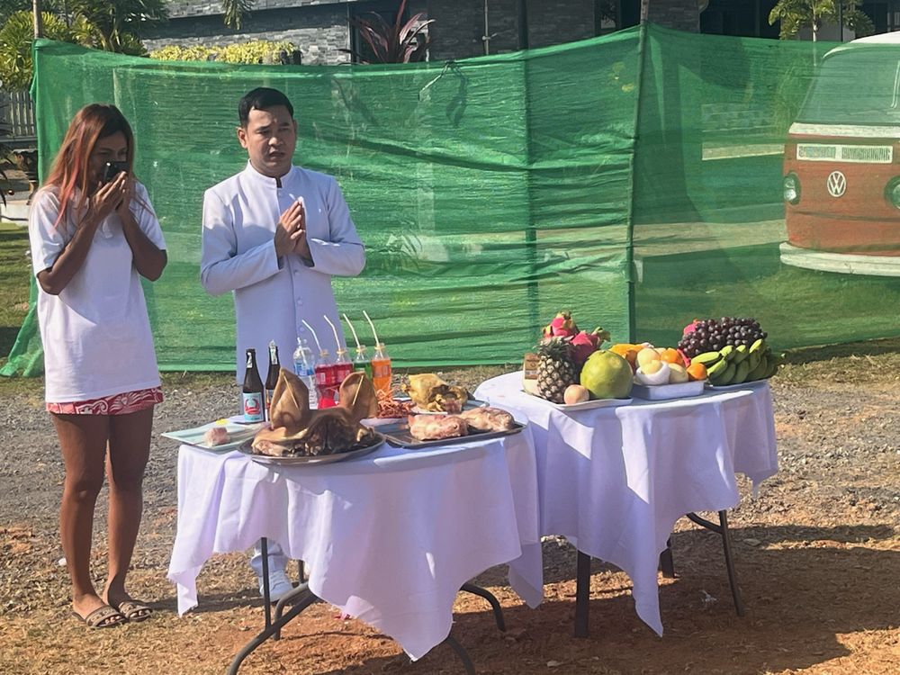 Ny köpare Hus 110 är sålt och då blir det välsignat enligt tradition Välkommen till Thailand Ingen dålig välsignelse på detta huset Välsignelsen har börjat Första bananplantan på plats Mat och dryck enligt seden